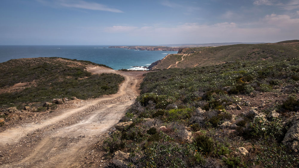 Toda a primeira parte do trajeto é fácil e plana, percorrida primeiro em paralelo à estrada nacional, da qual depois nos afastamos para, quase 10km depois, andados em estrada de terra batida, recuperarmos as desimpedidas vistas sobre o oceano, que o caminho sobre as falésias nos proporciona.