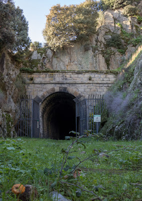 O primeiro, e mais extenso, dos túneis, com mais de quilómetro e meio de comprimento, surge logo na primeira curva do caminho. Entro na obscuridade. Cheira-me a fumo. Não sei se é sugestão, mas a verdade é que me cheira a fumo.... avanço pelo túnel dentro e ligo a lanterna para ver o chão que piso.